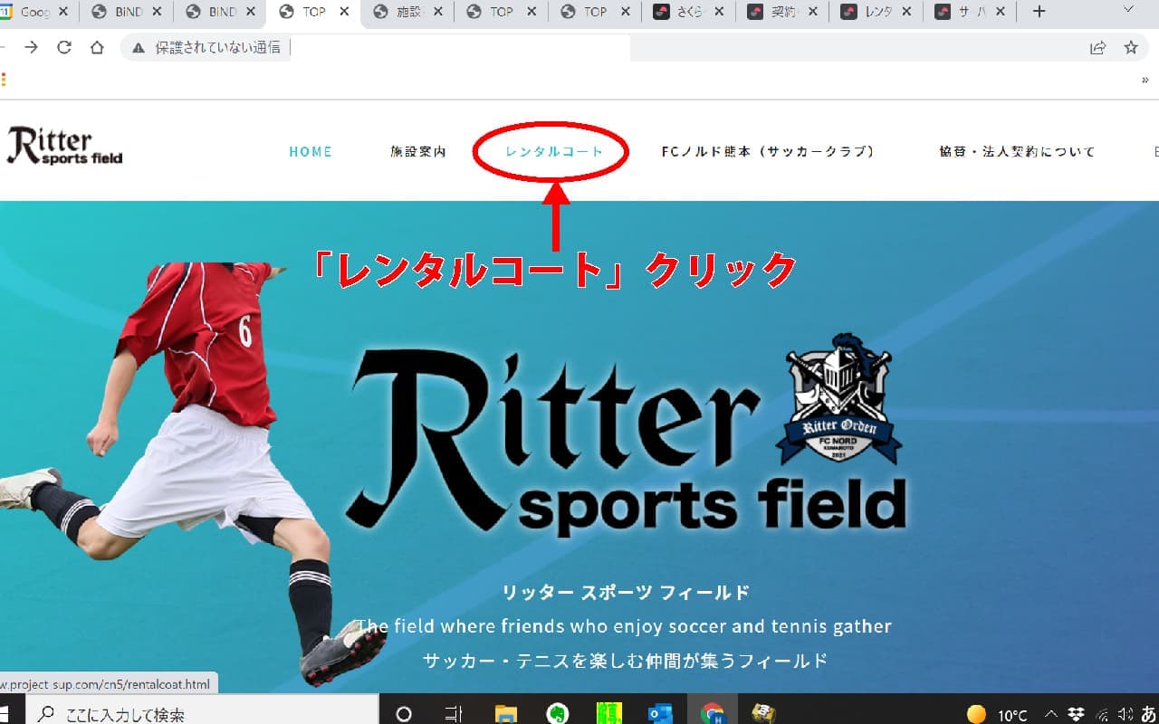 1.まず「レンタルコート」リンクボタンをクリックし、レンタルコートページへ行きます。