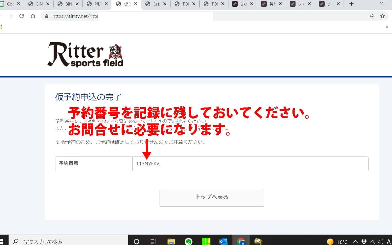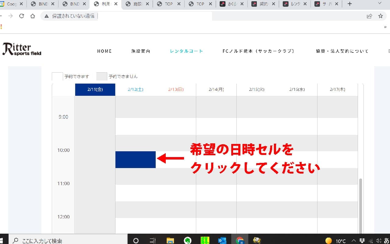 6.予約時間とコート場所に間違いがなければ「予約する」ボタンをクリックしてください。